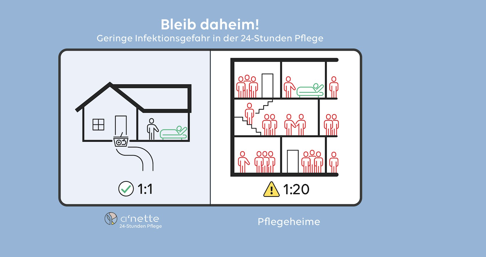 Eine 24 stunden betreuung minimiert die chance einer infektion im vergleich enorm.