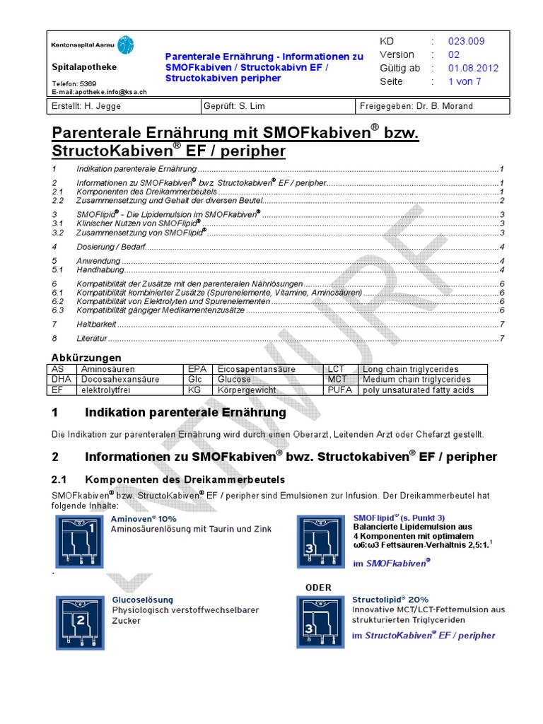 5 anwendung smofkabiven ef und smofkabiven sind ausschliesslich zur zentralvenösen applikation geeignet. Cookies werden auch verwendet um ihnen auf sie angepasste hinweise auf produkte und dienstleistungen auf unserer oder auf websites dritter zu geben. Please try again later. Bitte entnehmen sie die details der betriebsnorm 019 1 parenterale ernährung auf bettenstationen für erwachsene.