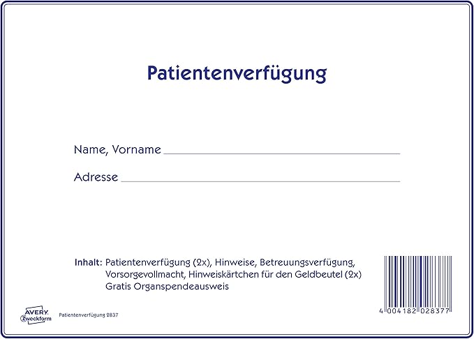 Avery Zweckform 2837 Patientenverfugung Set Patientenverfugung