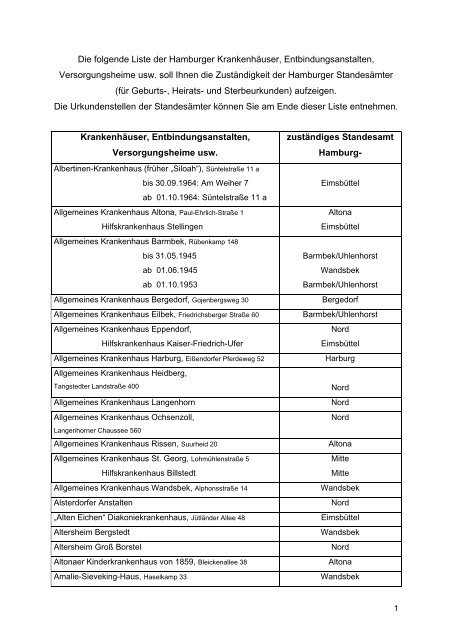 Die Folgende Liste Der Hamburger Krankenhauser