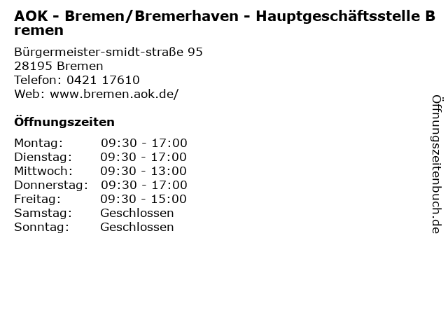 Aok Bremen Bremerhaven Bremen Burgermeister Smidt Strasse 95 28195