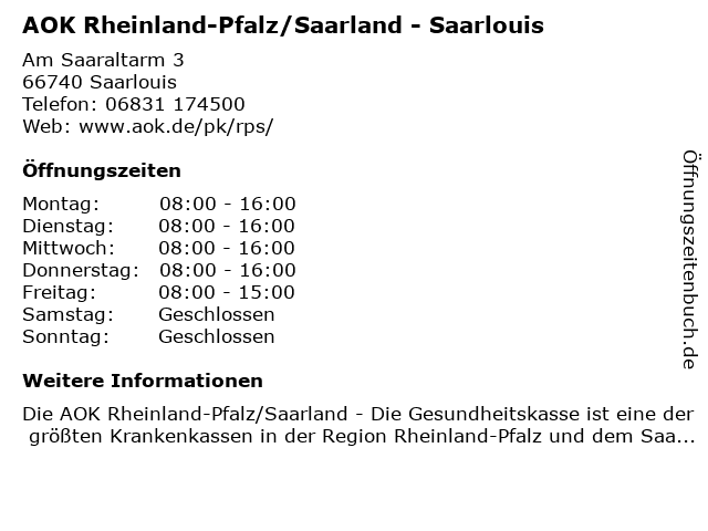 Aok Rheinland Pfalz Saarland Offnungszeiten In Saarlouis Am