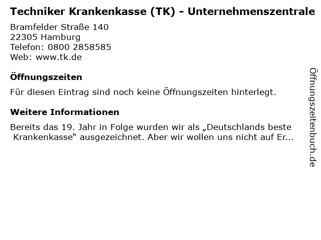 Die techniker tk techniker krankenkasse die krankenkasse wurde am 03. Die tk pflegeversicherung kann sie mit einem monatlichen pflegegeld unterstützen. Techniker krankenkasse adresse in hamburg hotline telefon fax und e mail zur kontaktaufnahme mit dem techniker krankenkasse kundenservice. Die tk verwendet cookies um ihnen einen sicheren und komfortablen website besuch zu ermöglichen.