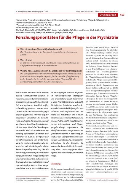 Forschungsprioritaten Fur Die Pflege In Der Psychiatrie Vfp