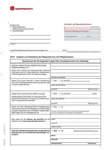 Anschließend ausdrucken absenden und fertig. Sie werden nach ihren bedürfnissen beraten. Antrag auf ambulante pflegeleistungen pdf 319kb die knappschaft. Per e mail die knappschaft.
