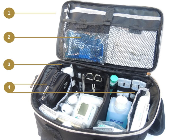 Die pflegetasche kann auch als notfalltasche eingesetzt werden.