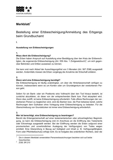 Merkblatt Bestellung Einer Erbbescheinigung Anmeldung Zofingen